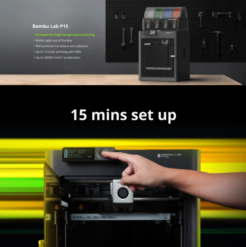 Bambu Lab P1S Combo – Impressão Multimaterial com Alta Performance e Câmara Fechada